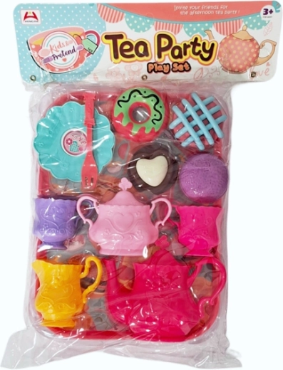 Vidámabbá teszi a gyerekek házi játékát ez a komplett edénykészlet a kis szakácsoknak. Tartalmaz teáskannát, 2 csészét, 2 tányért, tejszíntartót, cukortartót, tálcát és kekszeket a valósághű játékhoz. 3 éves kortól ajánlott.