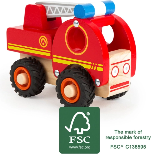 Indulj hősies mentési küldetésekre ezzel a gyönyörűen kidolgozott tűzoltóautóval, amely 100% FSC fából készült. A dizájn nemcsak valósághű, hanem a kicsi kezek számára is biztonságos, a szilárd anyag és a lekerekített élek révén. A játék elegendő helyet kínál figuráknak és a mozgatható létrával bővíti a játéklehetőségeket.