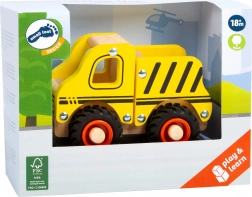 Ez a kompakt építőjármű FSC tanúsított fából minden kis építőt elragadtat. A gumírozott kerekeknek köszönhetően különböző felületeken is csendesen és stabilan gurul, és biztonságos a gyerekszobában. A fa természetes hatásának és az élénk sárga színnek a kombinációja ösztönzi a kíváncsi játékot és a készségek fejlődését.