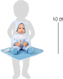 A Small Foot Lucas aranyos baba puha textil testtel, műanyag fejjel és végtagokkal ideális társ 2 éves kortól. Könnyen öltöztethető és vetkőztethető, a csomag része a színben összeillő cumika és takaró. A valósághű arckifejezés gyönyörű, nem pislogó szemekkel támogatja a képzeletet és a szociális készségeket játék közben.