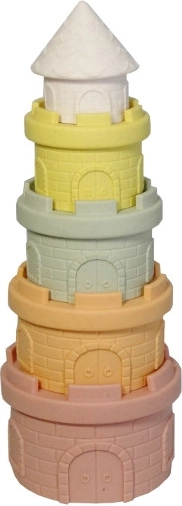 Ez a puha gumi kockakészlet ideális az első építkezésekhez. A biztonságos és kellemes tapintású anyagnak köszönhetően a legkisebbek is bátran játszhatnak vele. A piramis alakba rendezve látványos vártorony jön létre, amely serkenti a fantáziát és támogatja a térbeli képzelőerőt.