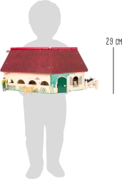 Ez a fa tanya úgy lett megtervezve, hogy támogassa a gyerekek fantáziáját. Az olyan részletekkel, mint a nyitható tetők és a tolóajtók, a gyerekek különféle tanyasi jeleneteket játszhatnak el.
