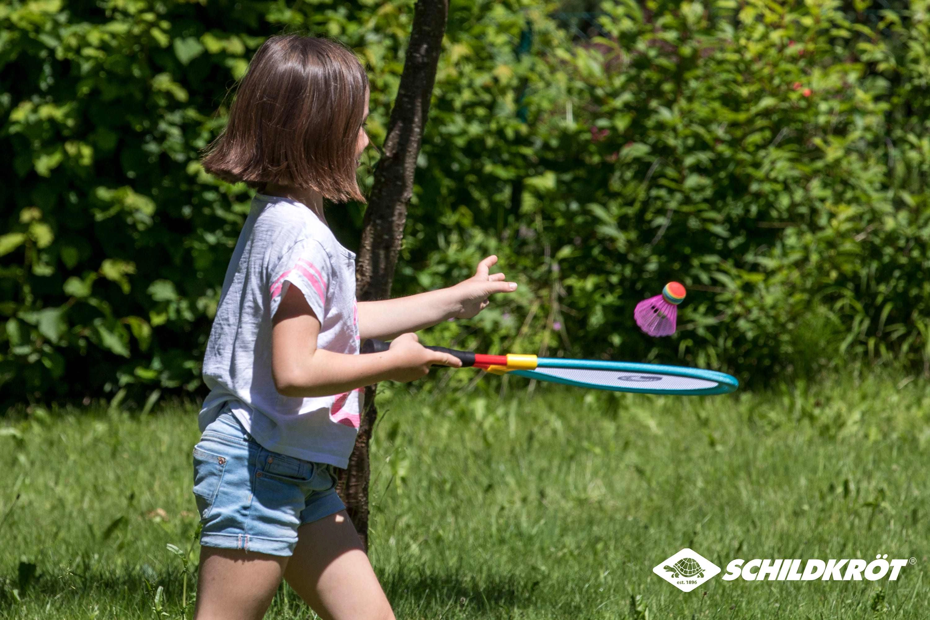 A SCHILDKRÖT márka univerzális készlete a népszerű ütősportokat – a teniszt és a tollaslabdát – egyetlen szórakoztató játékká egyesíti az egész család számára. A rugalmas hálóval ellátott keretnek köszönhetően kevesebb erő is elég az ütéshez, így tökéletes gyerekeknek és kezdőknek. A csomagban 2 nagy ütőt (62,5 cm), egy puha labdát és egy színes tollaslabda-labdát találsz, amelyekkel kint és bent is játszhatsz.