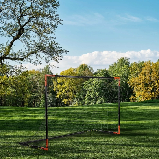 A csomag része a rögzítő cövekek és a hálórögzítő klipszek, így a kapu intenzív játék közben is szilárdan a helyén marad. Az ideális, 180 × 120 × 90 cm-es méretek tökéletesek fiatal futballistáknak, lövések és védések gyakorlásához.