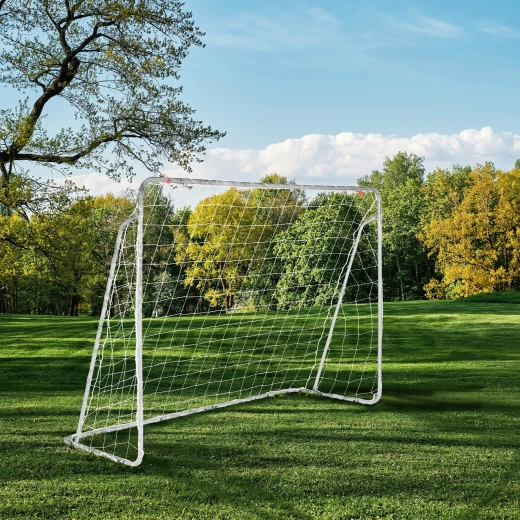 A szett része a földhorgony a biztonságos rögzítéshez és a klipszek, amelyek a hálót stabilan a helyén tartják. Tökéletes otthoni gyerekedzéshez, a lövés pontosságának fejlesztéséhez és kerti meccsekhez.