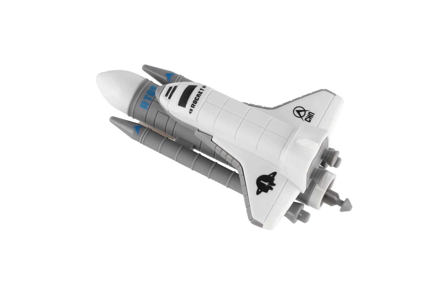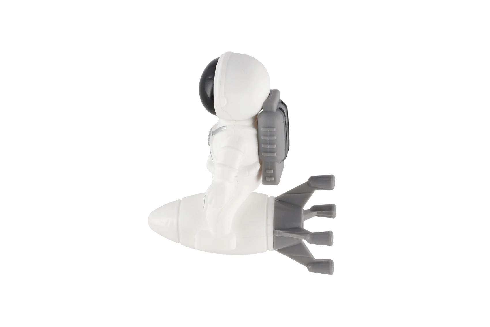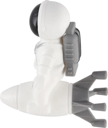 Kompakt műanyag modell hajtóművekkel és kis szárnyakkal, ideális a képzeletbeli játékhoz vagy a kis kutató polcának díszeként.