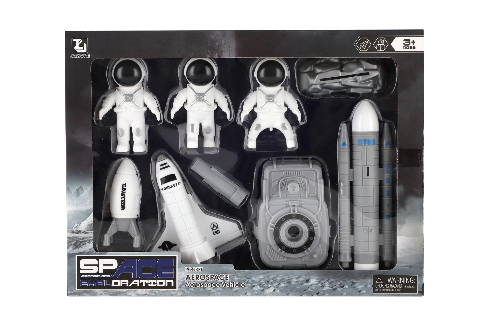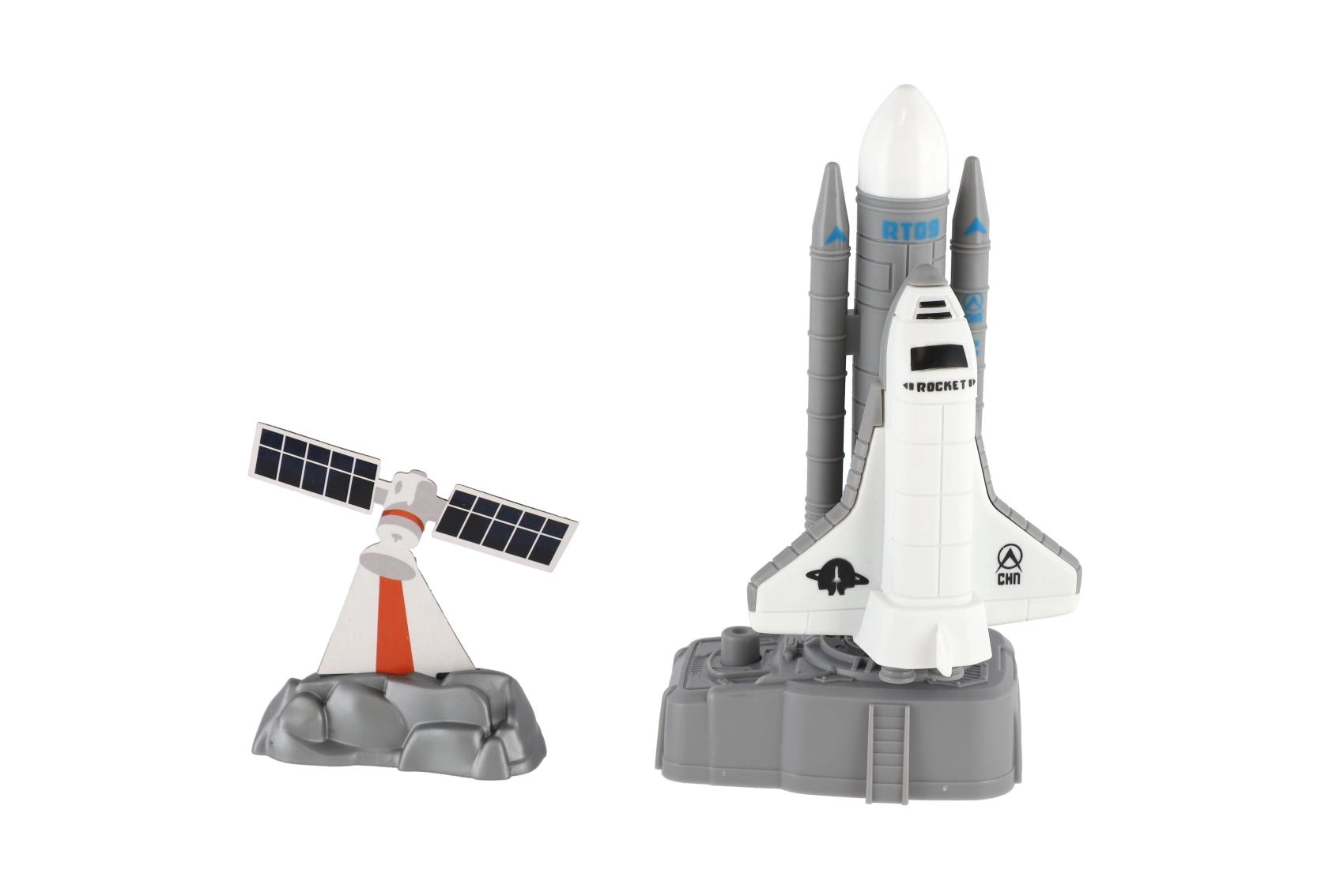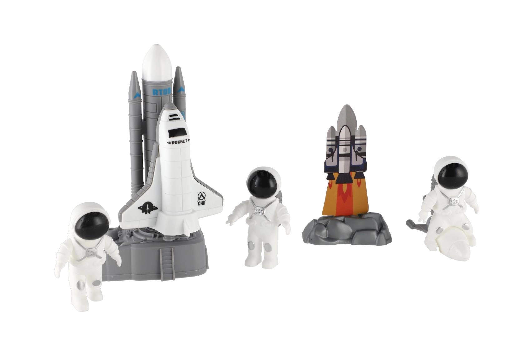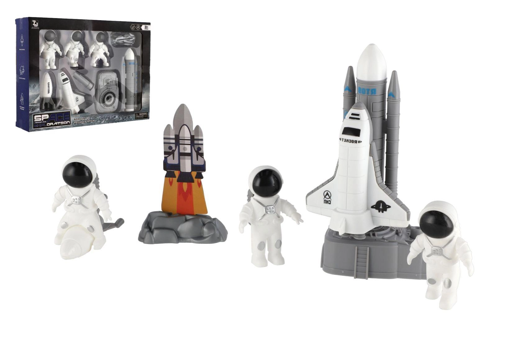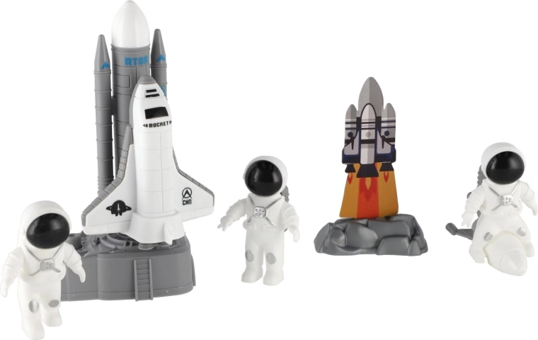 A csomag tartalma: űrrepülőgép erősítő fokozatokkal, űrhajós figurák és kiegészítők, mint állomás vagy műhold. Minden elem könnyen megfogható és strapabíró játékra készült, így alkalmas a mindennapi kalandokra és a polcon való kiállításra is.