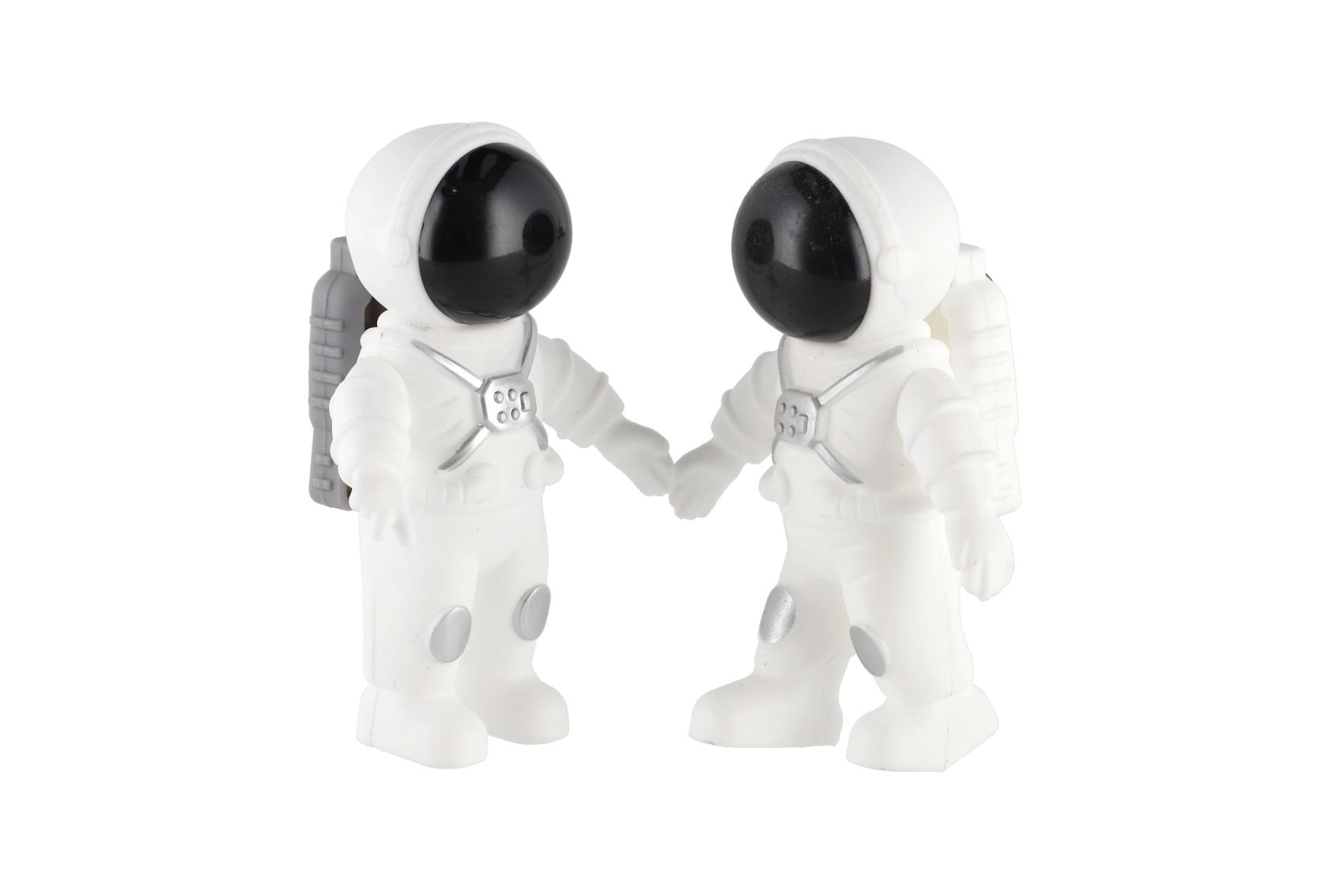 Részletgazdag űrhajósok hátizsákokkal és fekete pajzsrostéllyal, készen az űrbéli expedíciókra, műholdjavításra és az állomás felfedezésére.