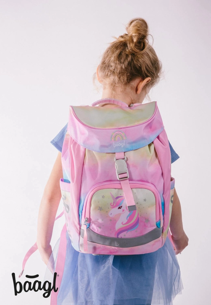 A BAAGL Airy Rainbow Unicorn iskolai szett könnyedséget, ergonómiát és varázslatos dizájnt visz minden tanítási napba. Az AIRY hátizsák 110–135 cm magas gyerekeknek kiemelkedik az intuitív Magnetic Click zárással, a légáteresztő AIRFLOW ERGO hátkialakítással és a teljesen állítható pántok rendszerével, mell- és derékpánttal az egyenletes teherelosztásért. Az egyrekeszes, áttekinthető belső elrendezés megkönnyíti az eszközök rendszerezését.