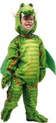 Ez a zöld sárkány jelmez igazi mesebeli lénnyé varázsolja gyermekét – a szemekkel és szarvakkal ellátott kapucnitól egészen a textil szárnyakig. A puha plüss kellemes tapintású és nem szúr, így az érzékeny bőrű gyerekeknek is ideális. A praktikus, tépőzáras megoldás gyors fel- és levételt tesz lehetővé.