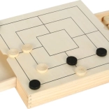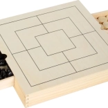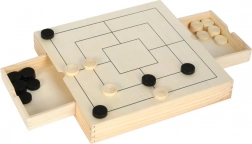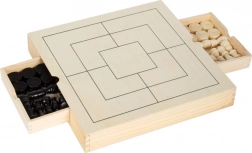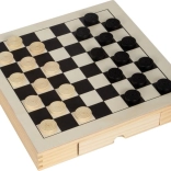 Ez az elegáns fa készlet három klasszikus stratégiai játékot kínál egyben: sakk, dáma és malom. A 28 × 28 × 4 cm-es kompakt méreteknek és a beépített fiókoknak köszönhetően utazáshoz és otthonra egyaránt ideális. Minden elemnek megvan a helye, így semmi nem vész el, és a játék néhány másodpercen belül elkezdhető.