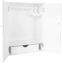Ez a fehér babaruha szekrény ideális kedvenc babáid ruhásszekrényének rendben tartásához.