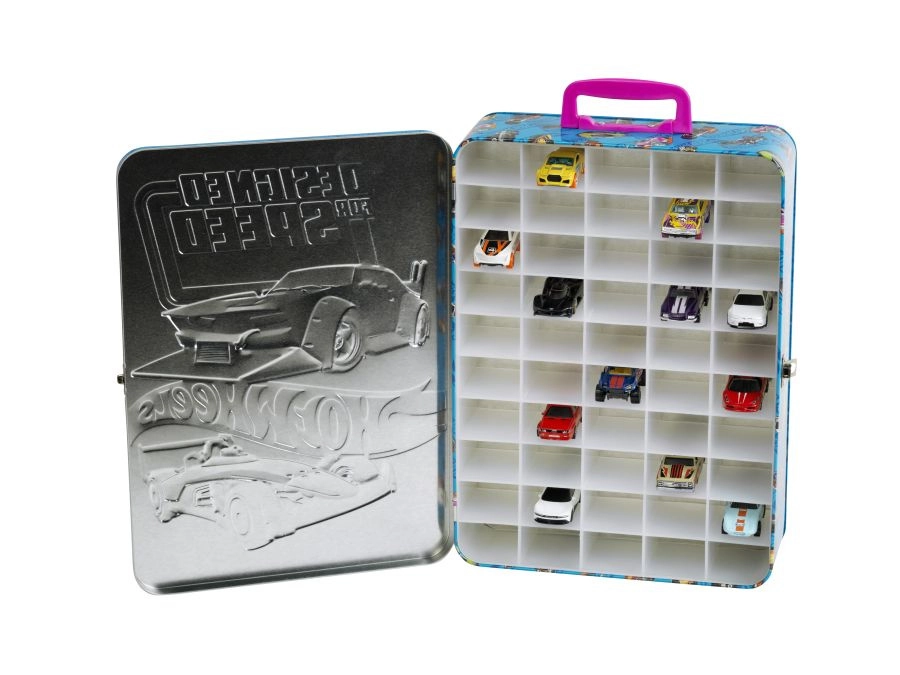 A színes nyomattal és HOT WHEELS logóval ellátott tartós fém ház, a kényelmes narancssárga fogantyú és a véletlen kinyílás ellen védő megbízható fém kapocs ideális tárolási megoldássá teszik ezt a bőröndöt otthonra és utazáshoz is.