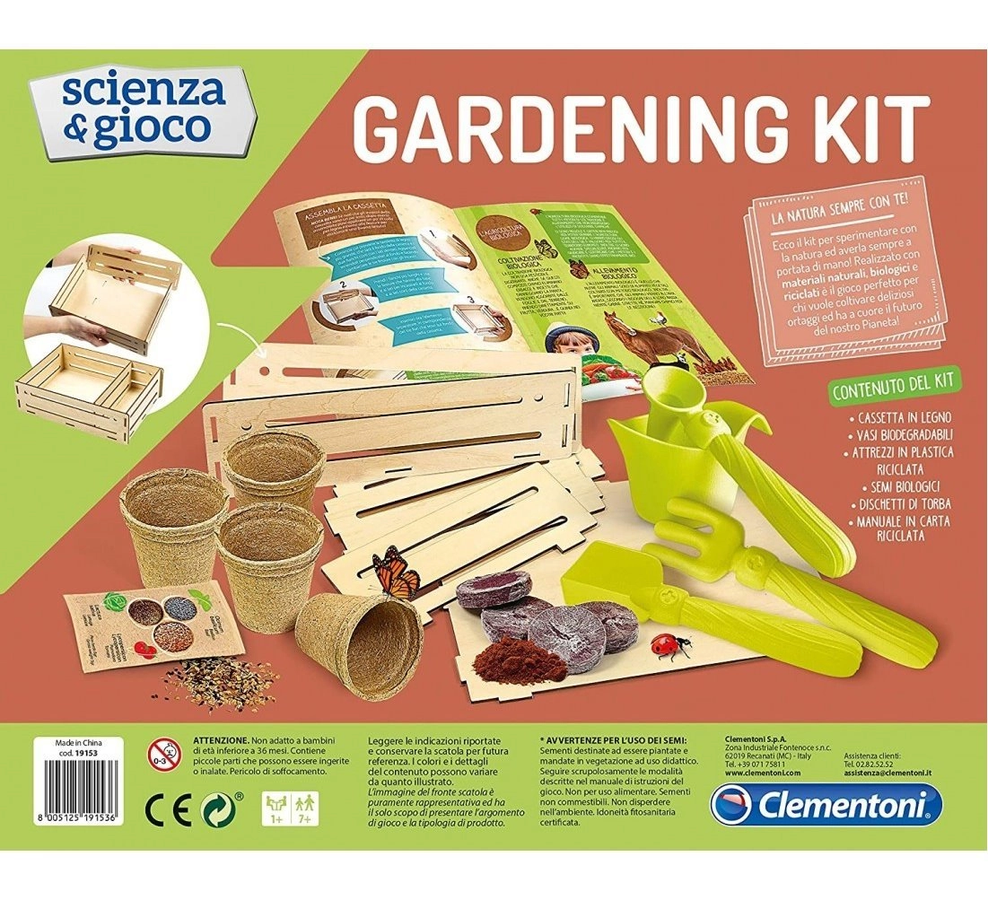 A Play for Future sorozatba tartozó, a CLEMENTONI márka által készített oktató kerti szett úgy lett megtervezve, hogy a gyerekek játékos módon ismerjék meg az ökológia alapelveit és a bolygó iránti felelős magatartást. Kipróbálhatják a zöldségtermesztést magtól, megtanulják a helyes öntözést, és megértik, hogy a sikeres betakarításhoz elengedhetetlen a türelem és gondoskodás.