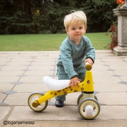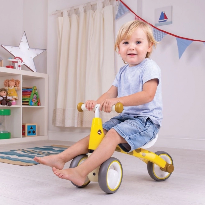 A négy széles kerék kiváló stabilitást és egyenletes gurulást biztosít, ideális az első lépésekhez a lábbal hajtós járgánnyal.