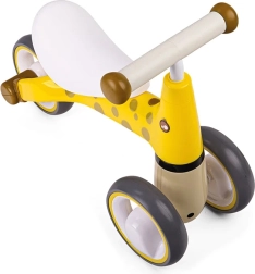 A DIDICAR aranyos, zsiráf mintás lábbal hajtós járgánya 12 hónapos kortól segíti a gyerekek egyensúlyérzékének, koordinációjának és nagymozgásának fejlődését. A stabil, négykerekű kialakításnak, a puha markolatoknak és a simán gördülő kerekeknek köszönhetően a haladás kényelmes és biztonságos otthon és kint egyaránt. Az alacsony ülés (24 cm) megkönnyíti a fel- és leszállást, valamint növeli a kicsik magabiztosságát.
