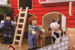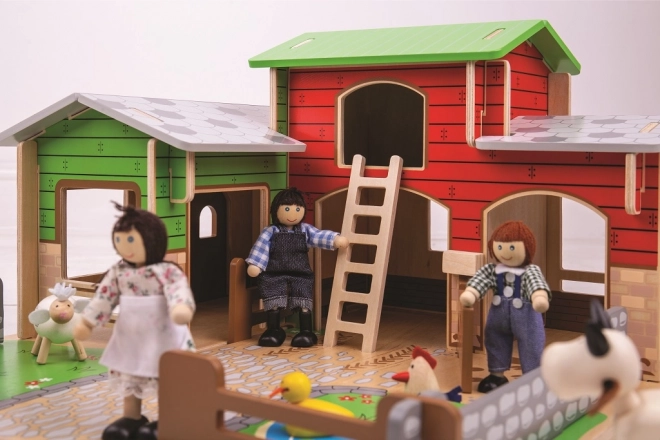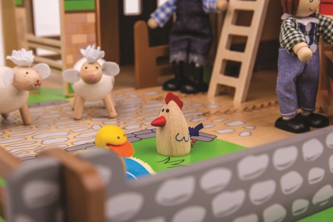 A készlet felelős forrásból származó minőségi fából készült, és kompatibilis más kiegészítőkkel, amelyek bármikor külön megvásárolhatók. A valósághű elemek, mint a kacsatós, a traktorgarázs és a mozgatható kapukkal ellátott karámok támogatják a képzeletbeli játékot, a történetmesélést és a finommotorika fejlődését.