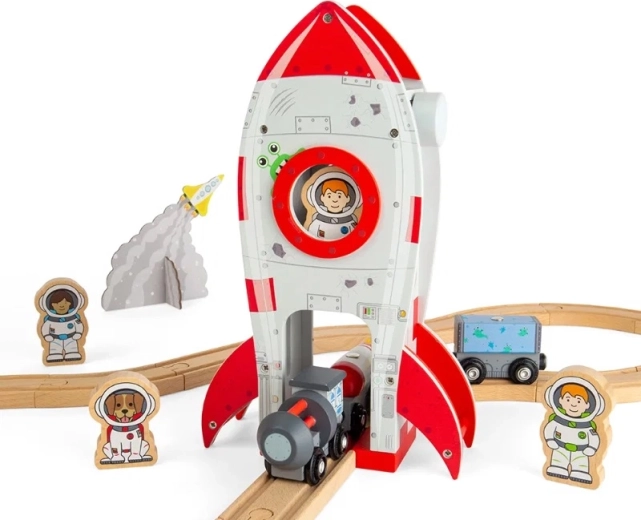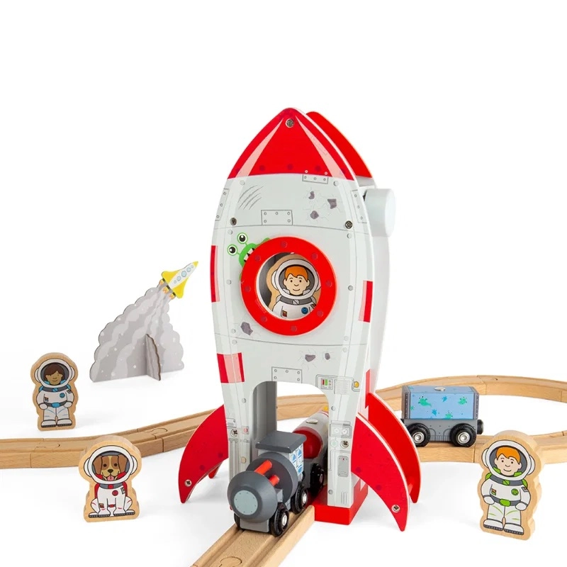 A rakéta minőségi, FSC tanúsított fából készült, tartós kivitelezéssel a mindennapos játékhoz. A gyerekek a kiegészítők egyszerű használatával fejlesztik fantáziájukat, kommunikációjukat és kéz-koordinációjukat. A legtöbb fa vonatpályával való kompatibilitás gondtalan bővíthetőséget biztosít.