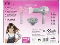Gyermek hajszárító Braunnal diffúzoral és fésűvel lehetővé teszi a kis fodrászok számára, hogy frizurákat készítsenek professzionális módon. Nem bocsát ki hőt, így biztonságos a gyerekek számára.