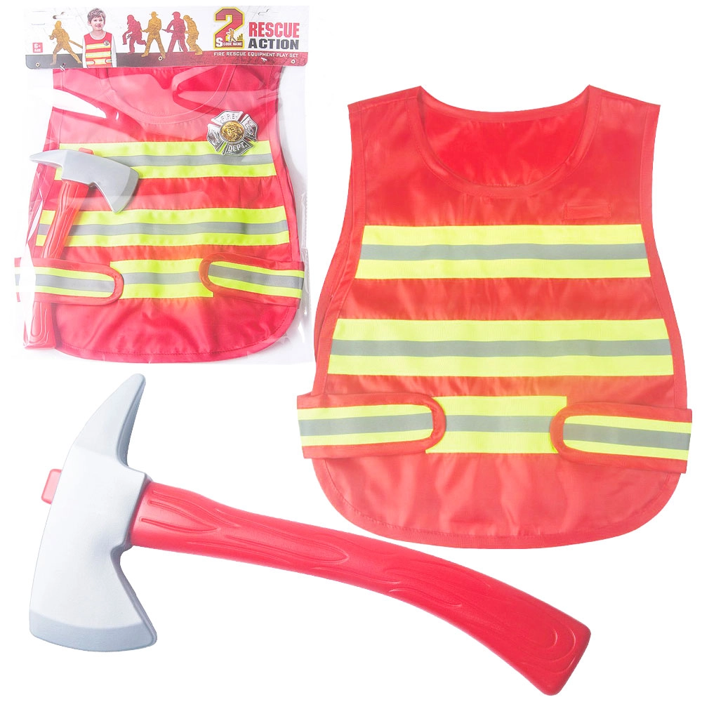 Támogasd a gyerekek fantáziáját ezzel a minőségi, piros színű tűzoltó mellénnyel, amelyhez fejsze és tűzoltó jelvény is tartozik. Remek szerepjátékhoz, a kreativitás és a mozgás fejlesztéséhez otthon és a szabadban is.