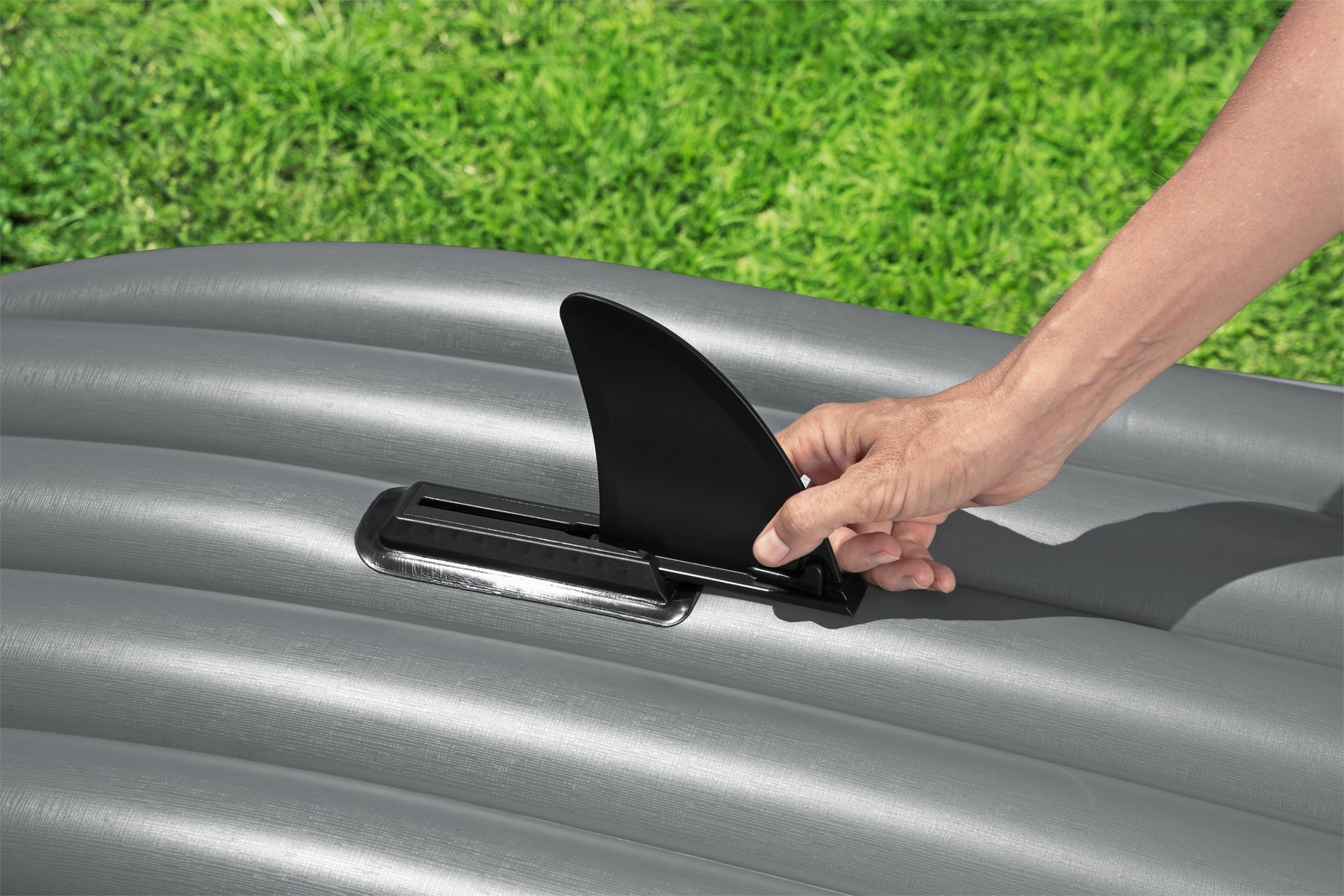 Praktikus megoldások, mint az első és hátsó gumipók hálók a csomagoknak, a körbefutó kapaszkodókötél a könnyű mozgatáshoz, valamint a gyorszáras szelepek a gyors felfújáshoz/leeresztéshez időt és helyet takarítanak meg. A levehető uszony (skeg) különböző méretekben segíti az egyenesfutást és javítja a kezelhetőséget.