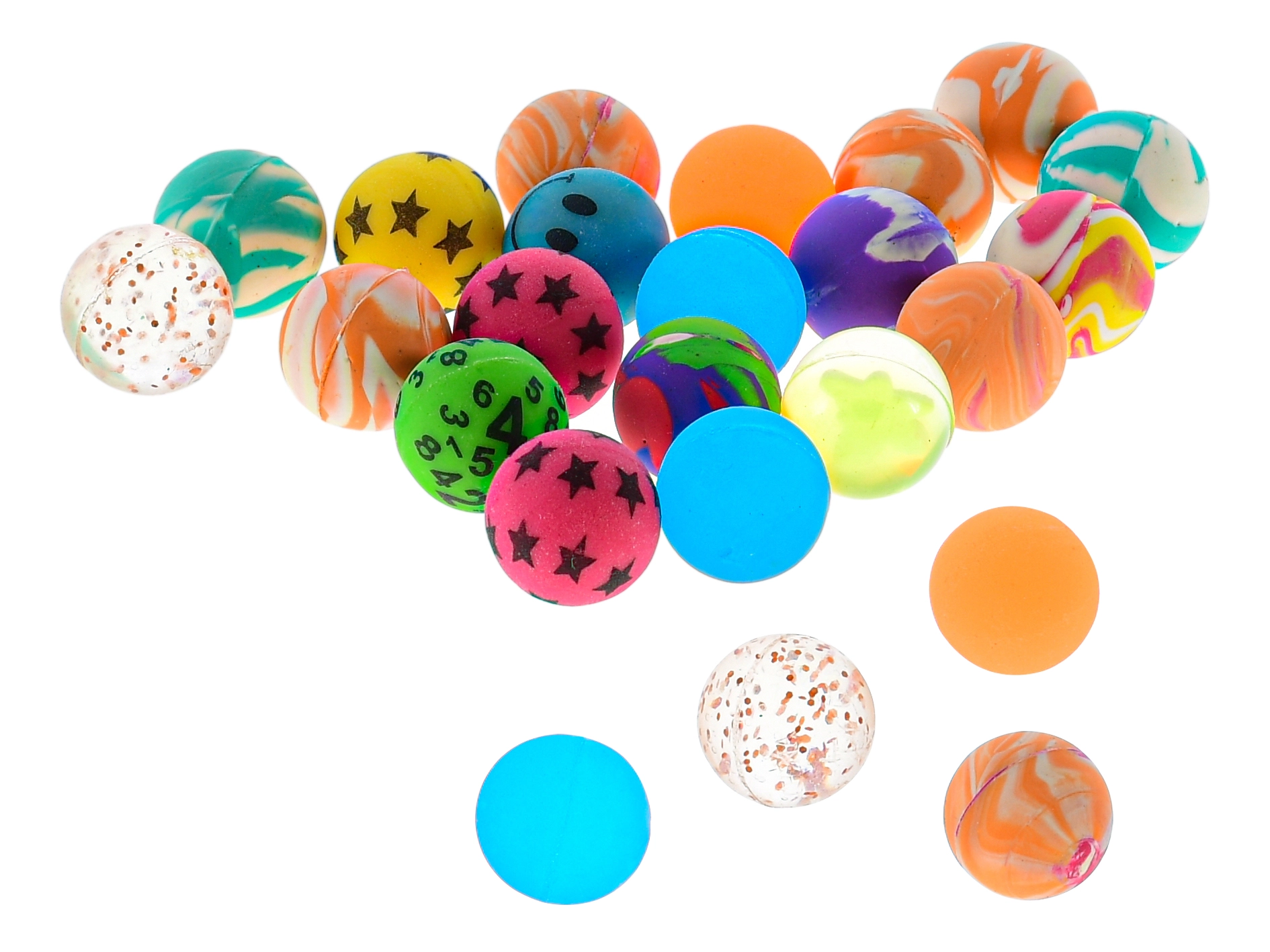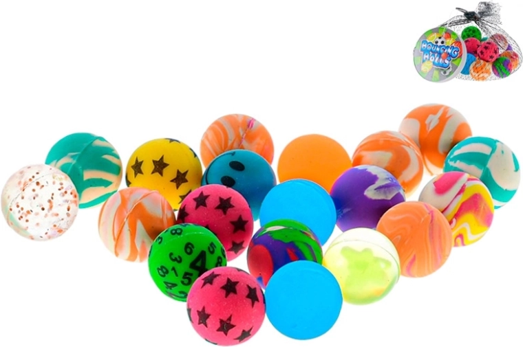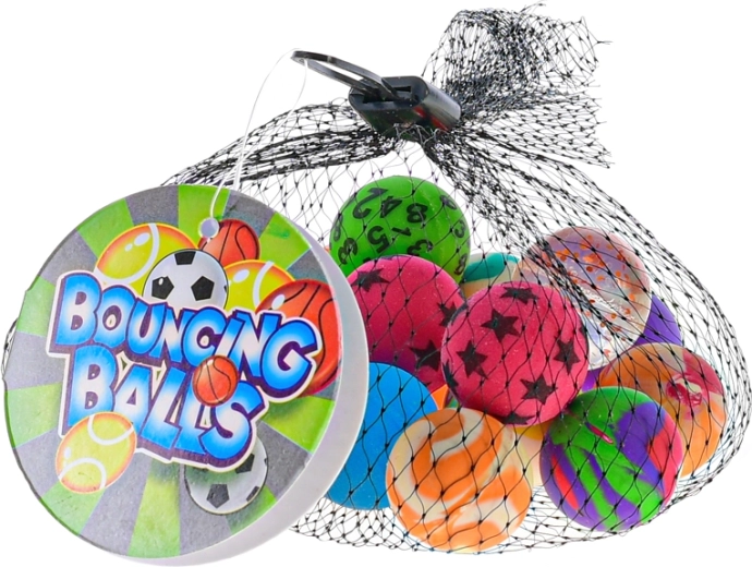 Fedezze fel az univerzális szórakozást a praktikus 20 darabos pattogólabda-készlettel, amely élénk színekkel és mintákkal nyűgözi le a gyerekeket. Magasan pattannak kemény felületeken, könnyű őket elkapni, és 2,5 cm-es átmérőjüknek köszönhetően tökéletesen illenek a kisgyermekek kezébe. A hálós csomagolás megkönnyíti a tárolást és a szállítást – ideális játszótérre, bulikra és kirándulásokra.
