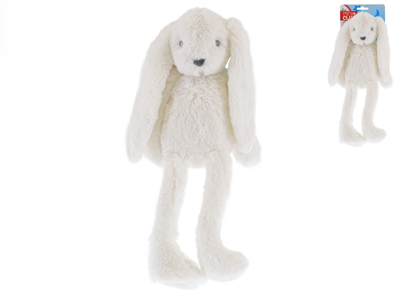 A bájos, fehér színű Mini Club plüss nyuszika puha társa a babáknak születéstől kezdve. 30 cm-es hossza és a hosszú lábak és fülek révén a kis kezek könnyen meg tudják fogni. A puha, kellemes anyag biztonságérzetet nyújt játék és elalvás közben is, a semleges dizájn pedig kislányoknak és kisfiúknak egyaránt ideális.
