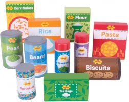 Gazdagítsa a gyermekek játékát és tanítsa meg őket az egészséges és kiegyensúlyozott táplálkozásról ezzel a színes fakemtszettel. A gyerekek megtanulják, honnan származik az étel és hogyan készítsék el. A készlet ideális a kreatív és ötletes játék támogatására.