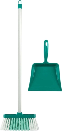 A szett része a könnyű felmosó vödörrel és csavaróval, a hosszú seprű, a kézi seprű és lapát, a szivacs, a törlőkendő, egy permetező flakon és egy „tisztítós” doboz. Minden színben összehangolt és kis kezekhez igazított, hogy a játék kényelmes és motiváló legyen.