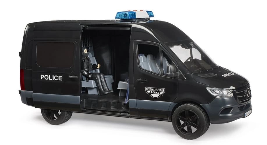 Indulj akcióba a BRUDER ikonikus Mercedes‑Benz Sprinter furgonjával és a rohamrendőr figurával! A valósághű részletek, a toló oldalsó ajtó, a nyitható vezetőfülke és az integrált zárka izgalmas rendőrségi küldetéssé varázsolják a játékot. A ABS műanyagból készült strapabíró felépítés bírja az intenzív játékot, miközben fejleszti a gyerekek kreativitását és finommotorikáját.