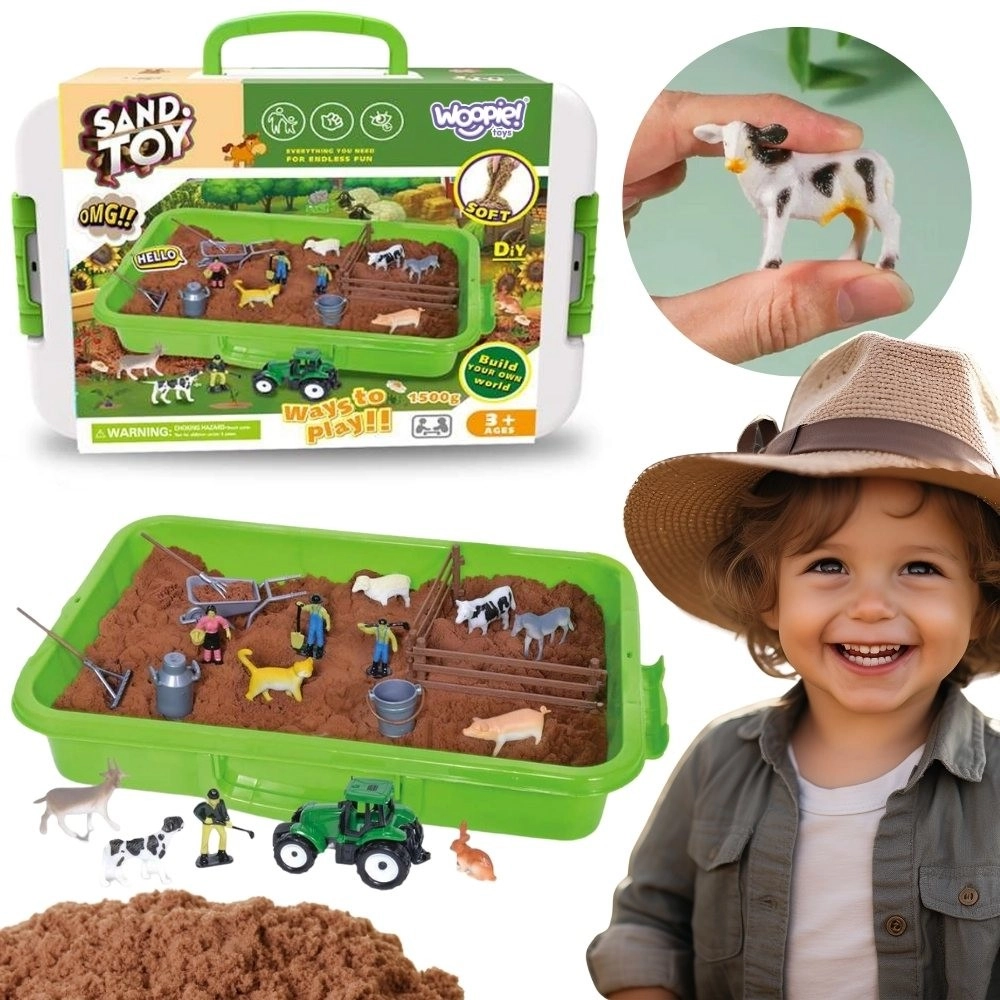 Fedezd fel a tanya vidám világát ezzel a kreatív kinetikus homok készlettel. A praktikus bőröndben akár 1500 g puha, formálható homok található barna színben, egy zöld traktor, gazdafigurák és háziállatok. A bőrönd egyben játékkádként is szolgál, amely rendet tart és lehetővé teszi a tiszta, szenzoros és kreatív játékot otthon és útközben is.
