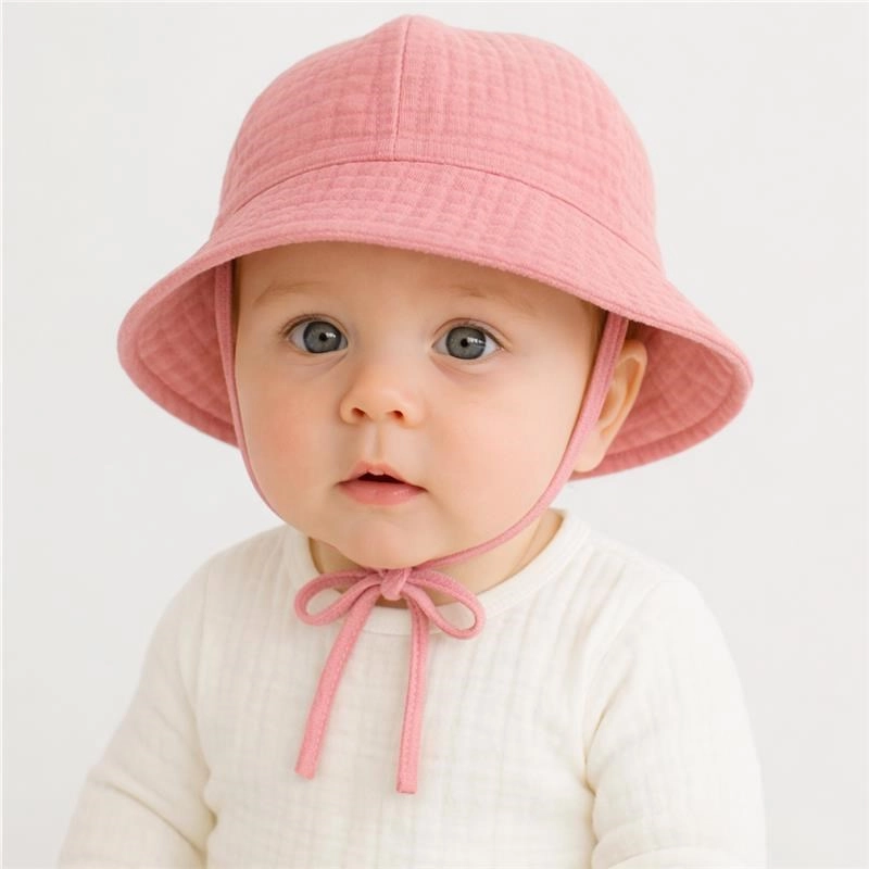 A New Baby márka bájos és praktikus, puha muszlinból készült gyerek kalapja megbízható védelemet nyújt a nap ellen, miközben maximálisan légáteresztő és könnyű. A zsinóros megkötésnek köszönhetően jól tart a fejen, nem csúszik, és kényelmes a mindennapi viselethez. 100% pamutból készült, OEKO-TEX STANDARD 100 tanúsítvánnyal.