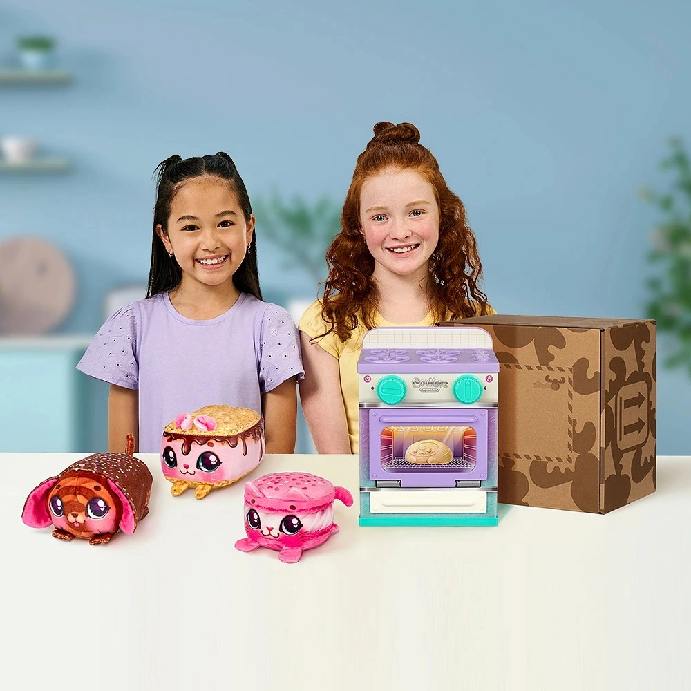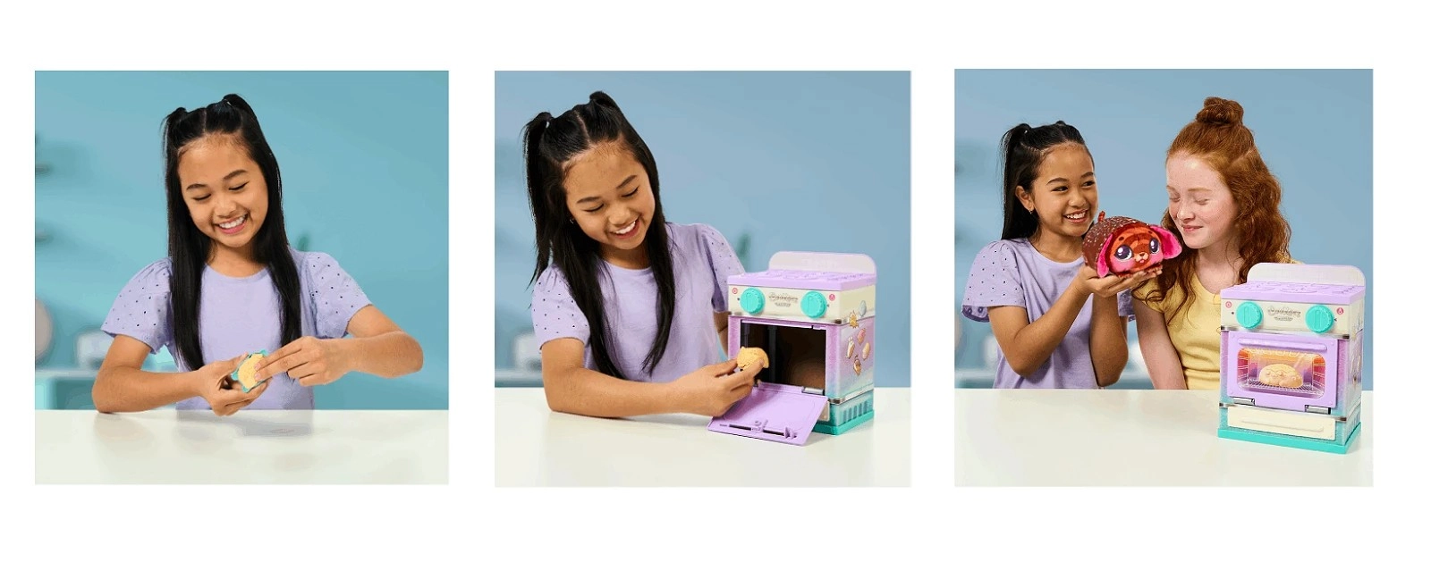 Keverd össze a mellékelt „összetevőket”, formázd meg a saját sütikézed a formákkal, majd tedd a sütőbe. Rövid idő múlva az ajtó kinyílik, és belül egy aranyos, illatos plüss kedvenc vár, készen az ölelésre. A gyerekek szerepjátékos főzést, felfedezés örömét és a finommotorika gyakorlását élvezik.