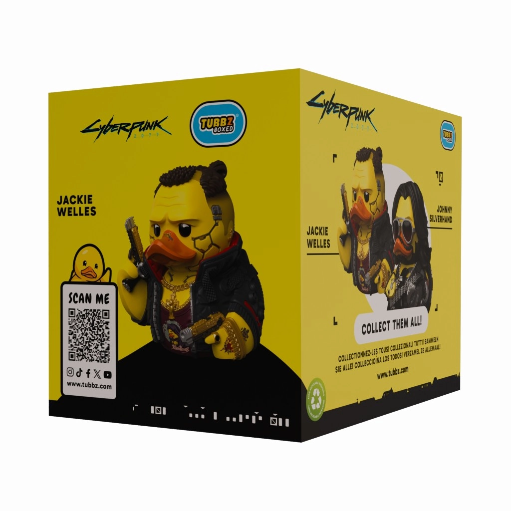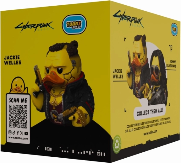 Ez a hivatalosan licencelt TUBBZ kacsácska a legendás Jackie Wellest alakítja vidám, gyűjtői formába. Kiemelkedik a ruha, a kiber-elemek és a kiegészítők precíz részleteivel, amelyek hűen utalnak a Cyberpunk 2077 világára. Kompakt méretének köszönhetően otthoni és irodai kiállításhoz egyaránt ideális.