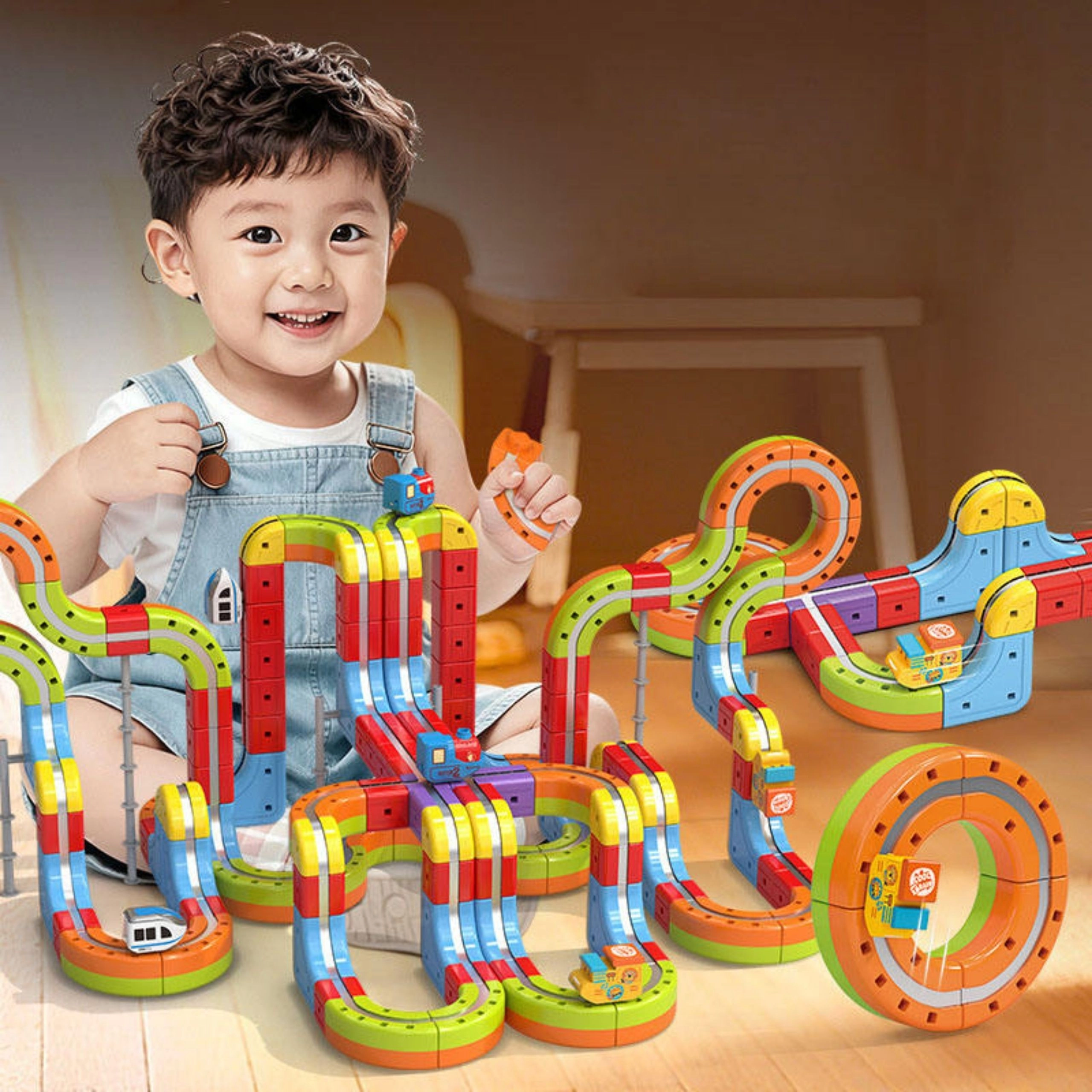 Szórakoztató és egyben fejlesztő építőkészlet, amely ösztönzi a gyermeki fantáziát és a logikus gondolkodást. A moduláris, többszínű elemekkel változatos pályák tervezhetők hidakkal, emelkedőkkel és kanyarokkal. A mágneses adhézió stabilan a síneken tartja a járművet, így a nehezebb szakaszokon is simán halad át.