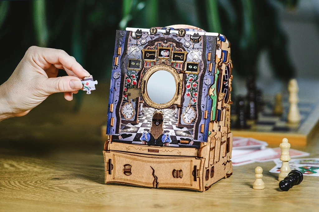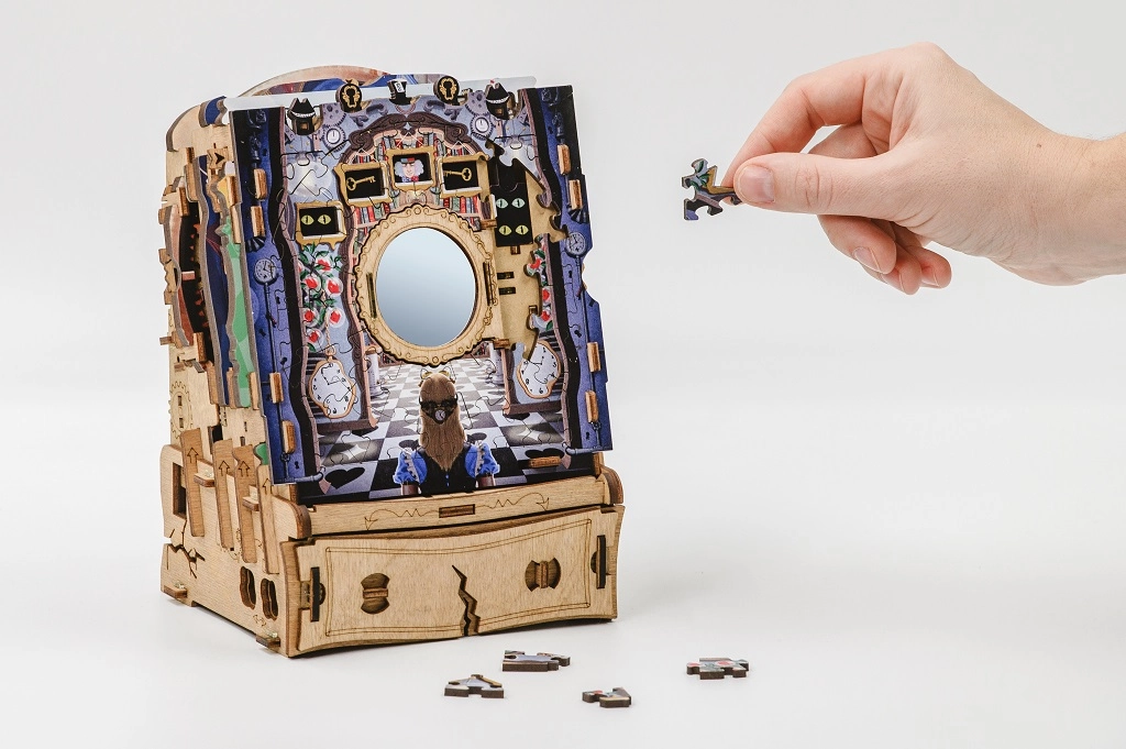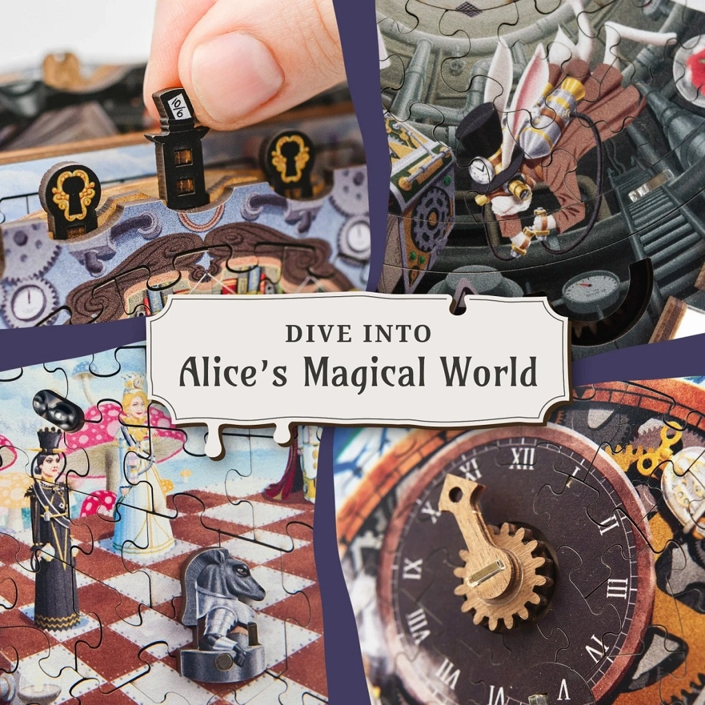 Merüljön el a fantáziában az iDventure fa fejtörővel, amely a klasszikus puzzlét okos escape box mechanizmusokkal ötvözi. Az ALÍZ CSODAORSZÁGBAN által ihletett, gyönyörűen illusztrált jelenetek kirakása közben rejtett útmutatókat fedez fel, logikai feladványokat old meg, és lépésről lépésre kinyitja a titokzatos dobozt a rejtett rekesszel.
