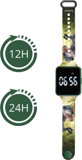 A LEXIBOOK Dínó karóra nagyszerű társ a kis felfedezőknek. A nagy digitális kijelző fényes LED számjegyekkel megkönnyíti az idő leolvasását, a 12/24 órás megjelenítés közti váltás pedig segíti a tájékozódást. A beépített ébresztő támogatja az önállóságot és a felelősségtudatot a mindennapi felkelésnél.