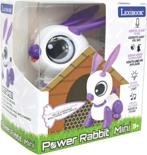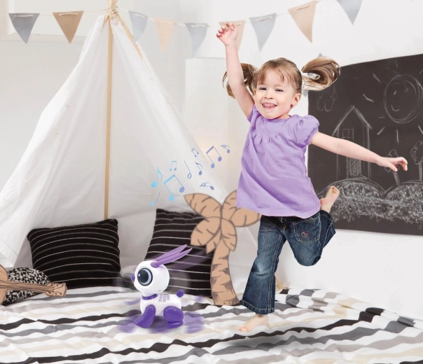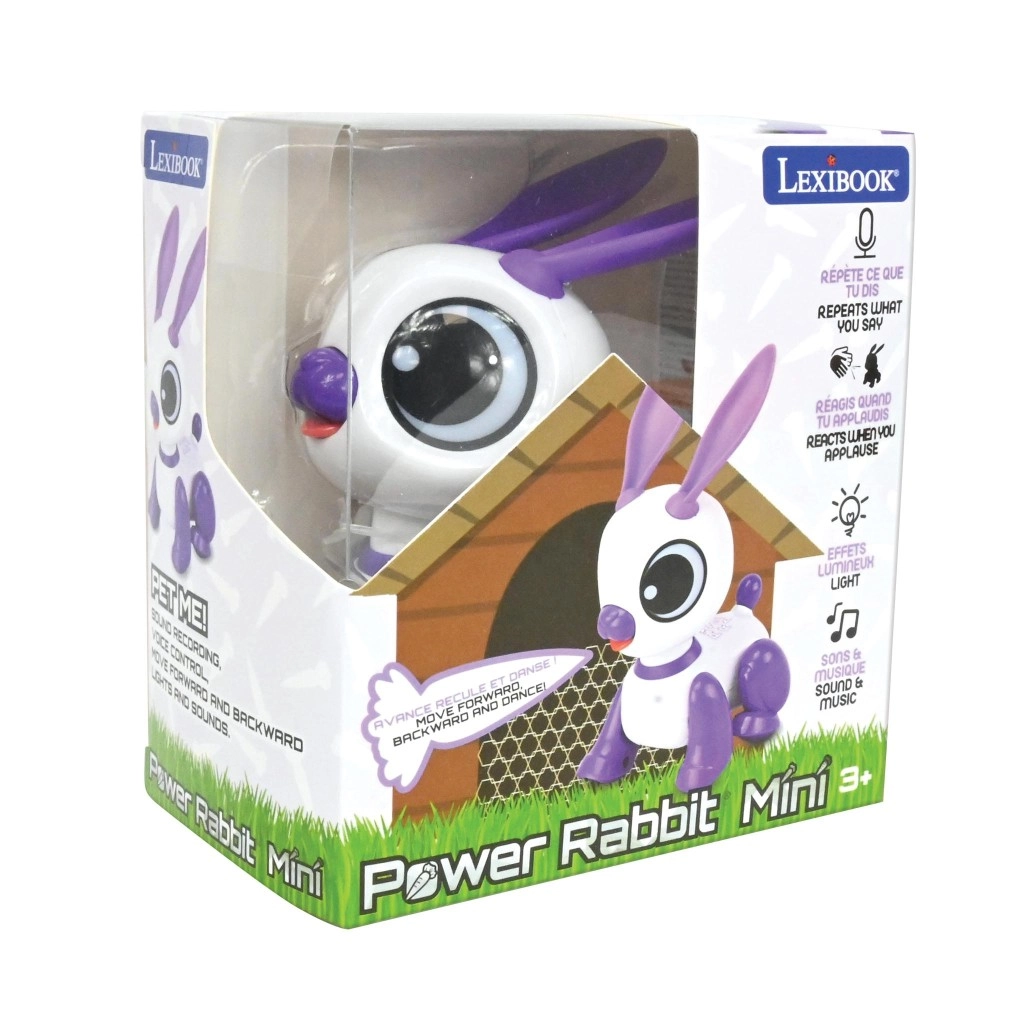 Interaktív mini robotnyuszi LEXIBOOK 3 éves kortól szórakoztatja a gyerekeket vicces hangismétléssel, tapsra adott reakcióval, játékos fényekkel, hangokkal és zenével. A kompakt fehér–lila dizájn nagy szemekkel és mozgó fülekkel támogatja a kreativitást, a beszédfejlődést és a motorikus készségeket. A nyuszi előre és hátra mozog, sőt táncolni is tud – tökéletes társ otthonra és útra.