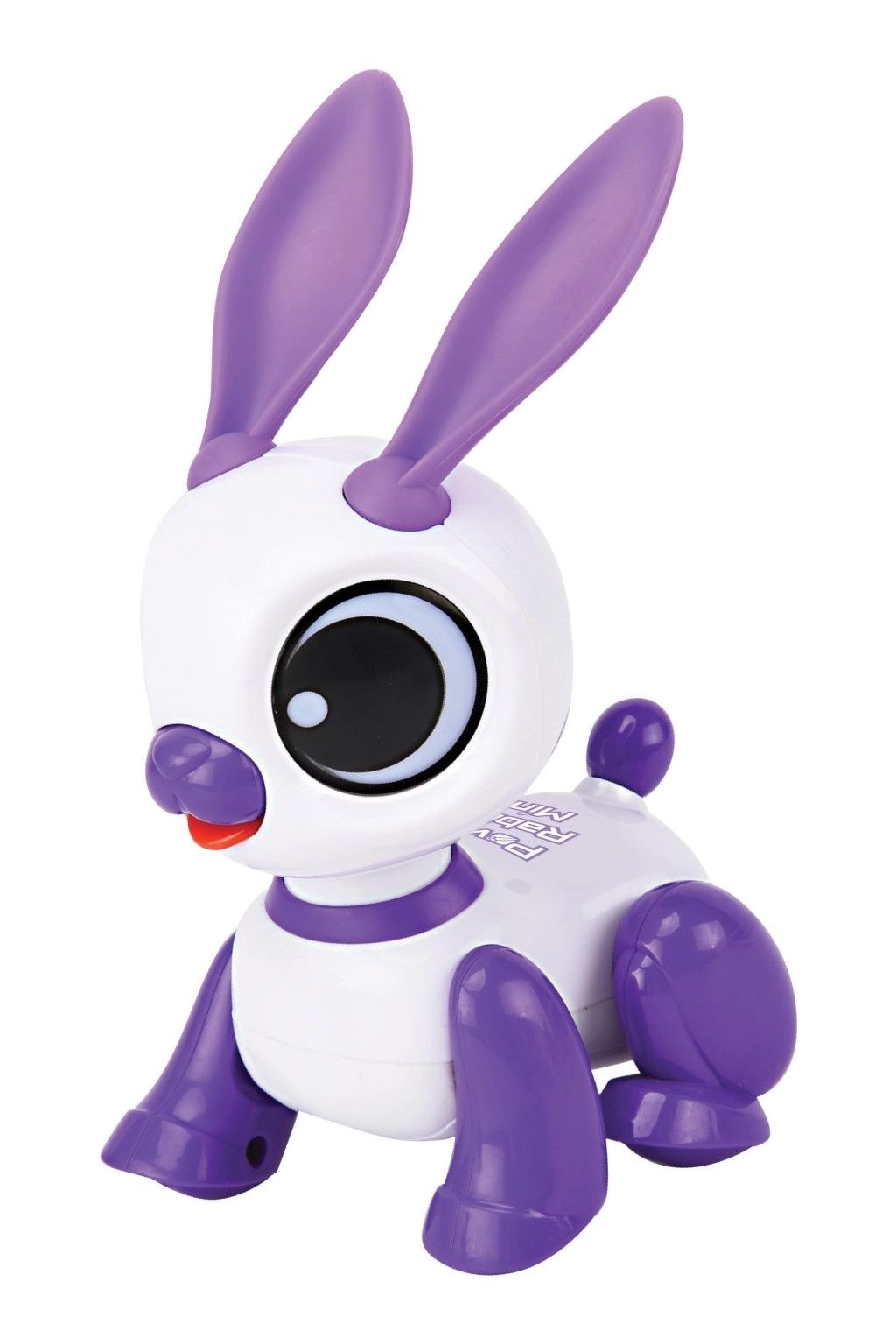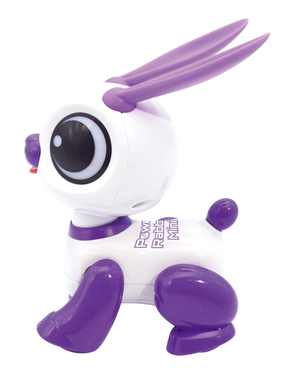 A fehér–lila kivitel nagy szemekkel és hosszú fülekkel biztonságos, könnyen tisztítható műanyagból készül, ideális a kis kezekhez. A nyuszi elindul előre és hátra, és vidám táncmozdulatokat mutat be, amelyek feldobják minden játékidőt.