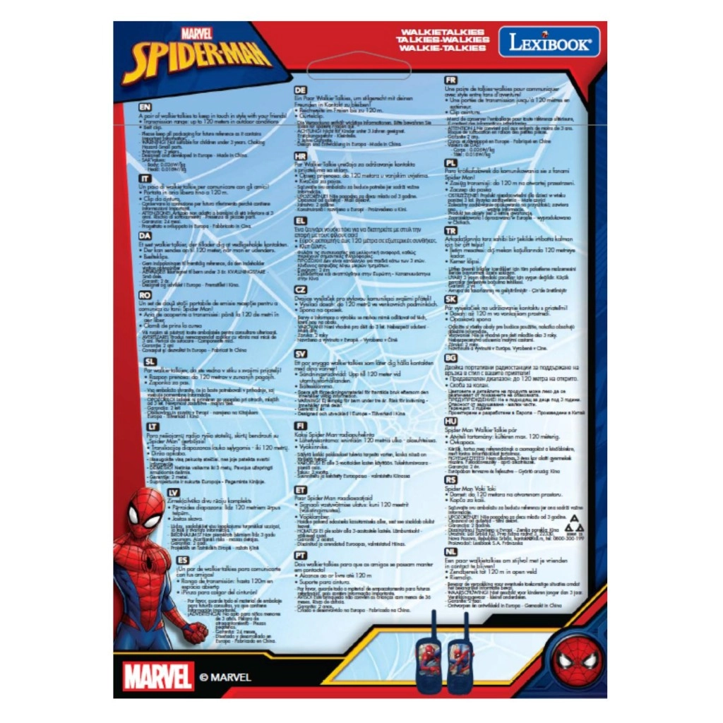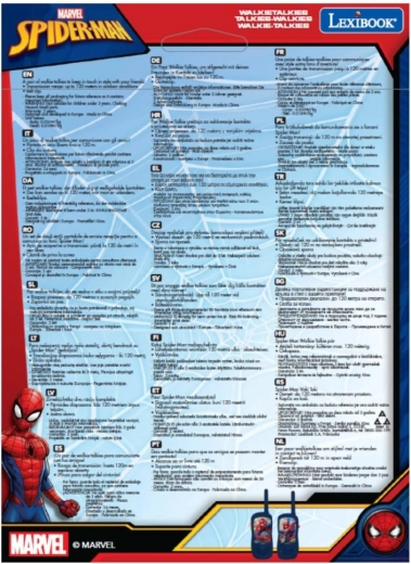 Fejlessze a gyerekek fantáziáját a LEXIBOOK SPIDER-MAN walkie-talkie-kkal. A sötétkék kivitel a népszerű hős feltűnő grafikájával első pillantásra magára vonja a figyelmet, míg az egyszerű kezelés és a hosszú antenna tiszta kommunikációt biztosít akár 120 méteres távolságig. A könnyű, ergonomikus kialakítás jól illeszkedik a kis kezekbe, és a praktikus csíptetőnek köszönhetően könnyen az övre rögzíthető.
