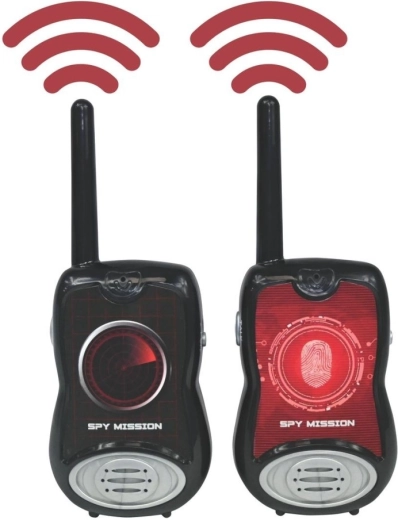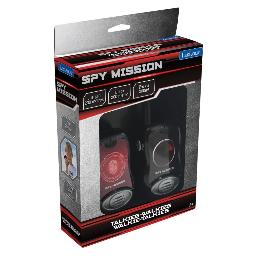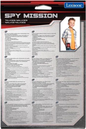 A Lexibook SPY MISSION walkie-talkie-k fekete színűek piros részletekkel és hosszú antennával a stabil kommunikáció érdekében. A gyerekek könnyen megnyomják az adás gombját, és a tiszta hangátvitelnek köszönhetően gond nélkül egyeztethetik küldetéseiket a parkban, a játszótéren vagy otthon.