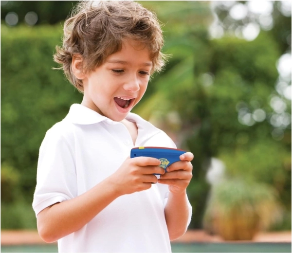 Könnyű és tartós kivitel, amely jól illeszkedik a gyerekek kezébe, és AAA elemes tápellátásának köszönhetően bárhol, bármikor bevethető.