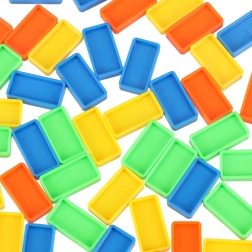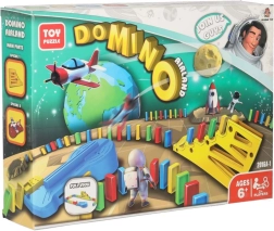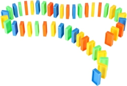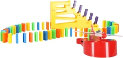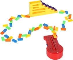 Csomag tartalma: 126× dominókő (4 szín), 2× repülő kilövővel, pályaelemek, 2× golyó, 1× figura, 12× dominóállvány, 52× oktató matrica (betűk, számok, matematikai jelek).