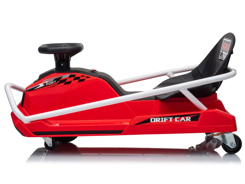 Elektromos drift gokart 24V a gyerekeknek irányítást, teljesítményt és valódi vezetési élményt nyújt. A 300 W-os kefe nélküli motornak, akár 14 km/h végsebességnek és az ötkerekű kialakításnak köszönhetően ideális a kontrollált megcsúszásokhoz és a sima kanyarodáshoz. A masszív fém váz, a biztonsági öv és a két menetmód biztonságos és izgalmas utazást biztosít.