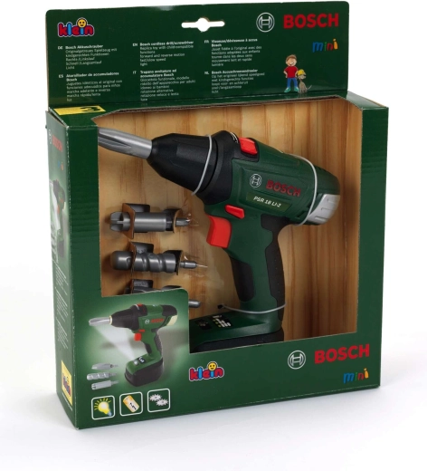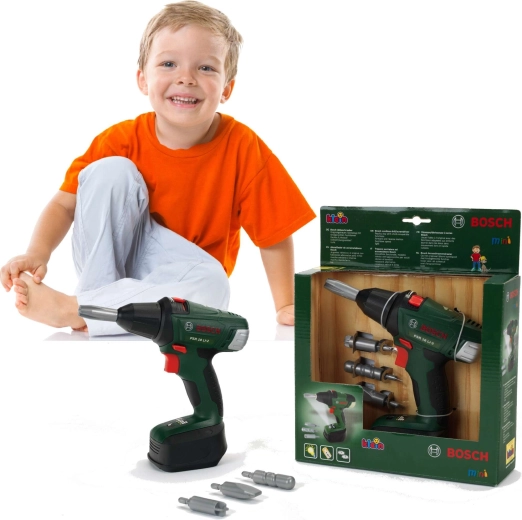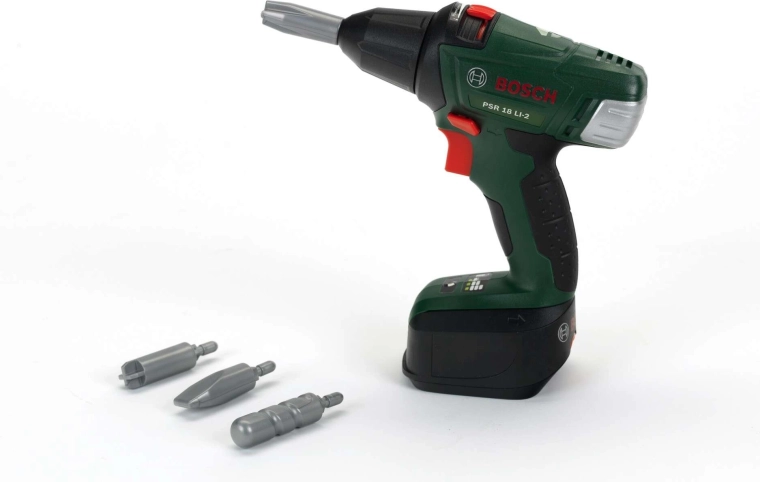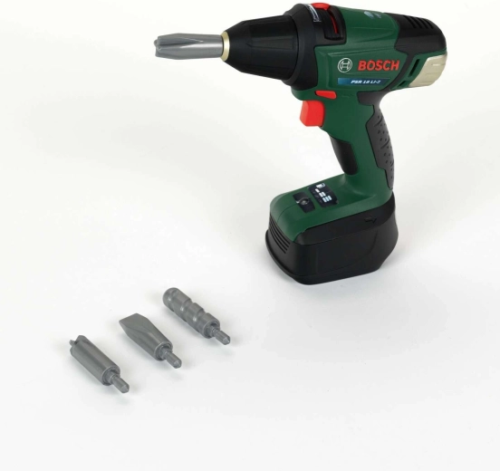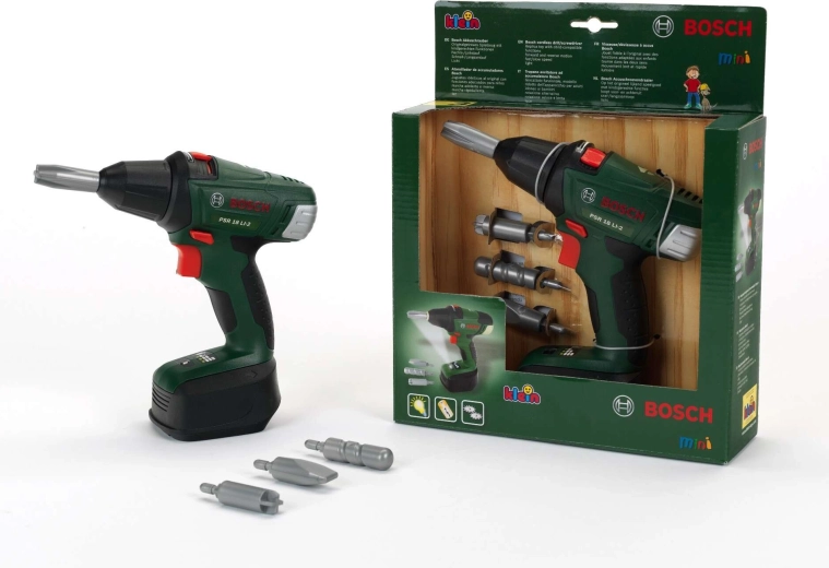 A Klein márkájú, élethű Bosch II gyerek akkumulátoros fúró biztonságos és szórakoztató módon segít utánozni a felnőttek munkáját. Cserélhető bitekkel, két sebességgel, jobb/bal forgásirány funkcióval és a hegyén LED fénnyel rendelkezik. Az ergonomikus fogantyú puha markolattal tökéletesen illik a gyerekek kezébe.