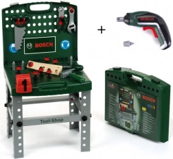 BOSCH hordozható műhely kofferben, Ixolino II akkumulátoros csavarhúzóval. Széles tartozékkészletet, összecsukható kialakítást, valamint olyan funkciókat kínál, mint a jobb/bal járás, a fény és hang, illetve a cserélhető bitek.