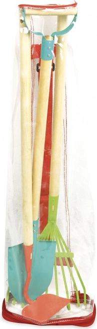 A csomagban mindent megtalálsz: ásót az ásáshoz és átültetéshez, gereblyét a lomb összegyűjtéséhez és a talaj elegyengetéséhez, kapát a lazításhoz és gyomláláshoz, valamint védőkesztyűt rugalmas szegéllyel a kényelmes viselésért. Ideális 3 éves kortól.