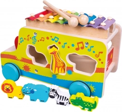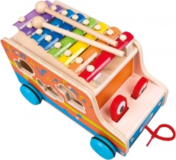 A Bino fa játék tökéletes társa minden gyermek számára. Ez a teherautó nemcsak húzható játékként szolgál, hanem szórakoztató zenei elemet is nyújt a xilofon a tetőn ütőkkel. A játék segíti a képességek fejlesztését, mint a színek és formák felismerése és támogatja a mozgáskoordinációt.
