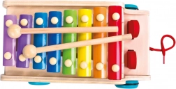 A gyermek zenei tehetségének fejlesztése színes xilofon és ütők használatával. A dallamalkotás játékká válik.