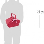 Minden egy kosárban: teáskanna, evőeszköztartó tálca, 4 nagy és 4 kistányér, 4 csésze és 4 kanál – azonnal kezdődhet a játék.